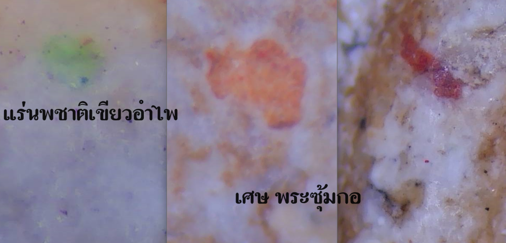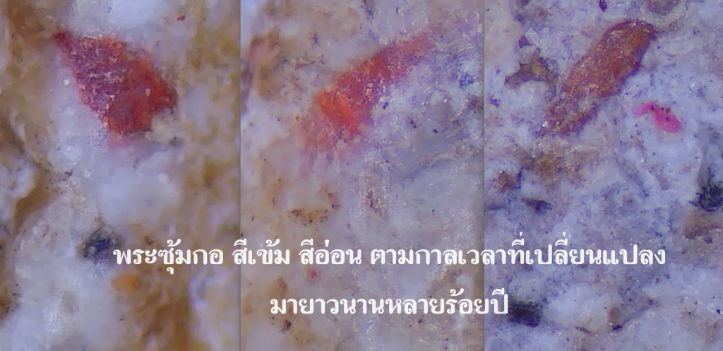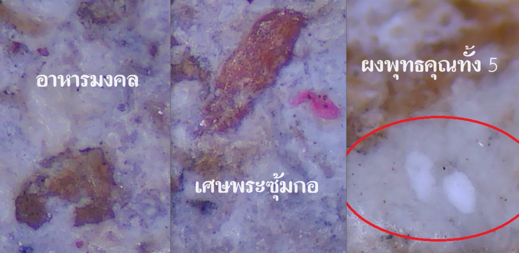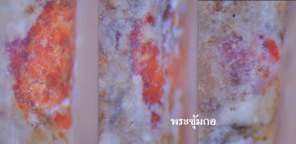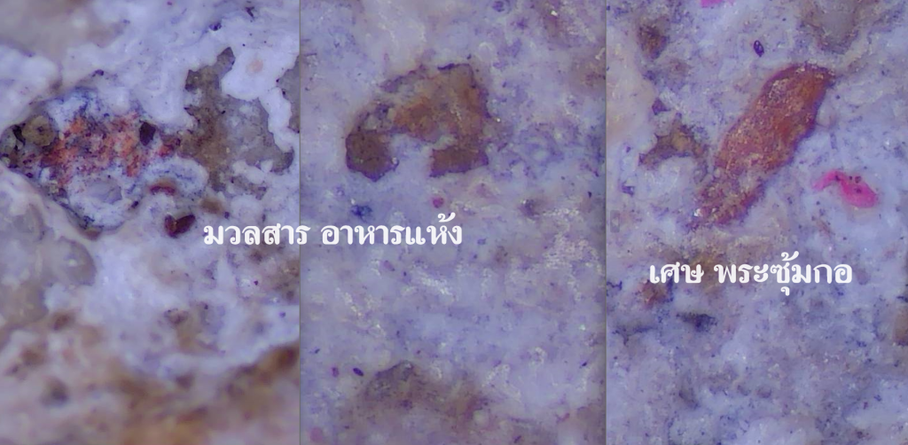 เนื้อพระ: เนื้อพระที่เก่าแก่แท้จริงจะมีความหนึกนุ่ม แห้ง และอาจมีร่องรอยของคราบรักหรือตังอิ๊ว (น้ำมัน) ที่ใช้เคลือบองค์พระในสมัยก่อน
